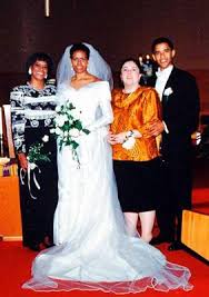 Michelle Obama na Barack Obama siku ya harusi yao wakiwa na mama zao, kushoto ni mama yake Michelle Obama, Marian Robinson na kulia ni mama yake Barack Obama, Ann Dunham.